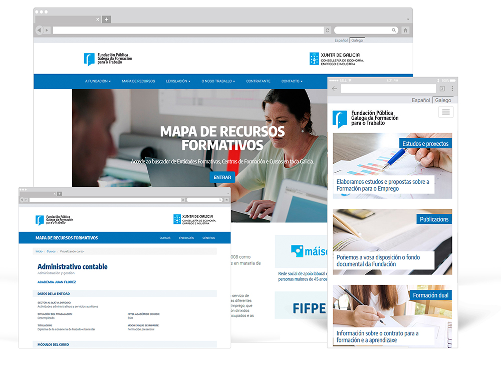 Diseño y maquetación de web corporativa para la Fundación Pública Galega da Formación para o Traballo, dependiente de la Xunta de Galicia: www.fpgft.gal